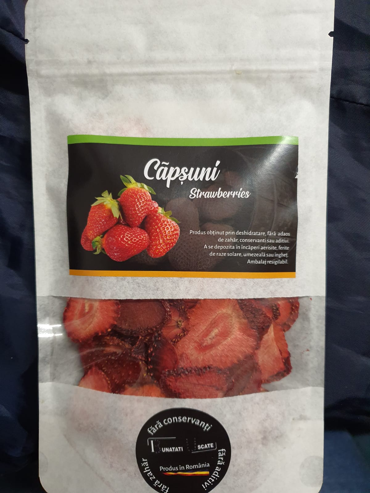 Produsul este obtinut prin deshidratare fara adaos de zahar, conservanti, sau aditivi. Poate contine urme de alte fructe sau legume.