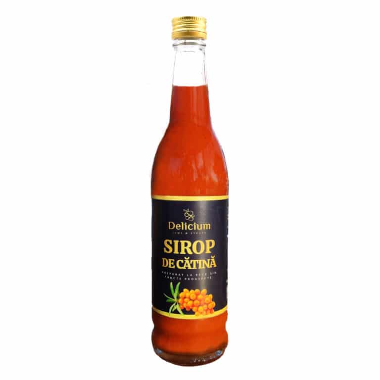 Ingrediente: suc proaspăt de cătină(50%), zahăr, apă, benzoat de sodiu (conservant- în urma diluției concentrația este nesemnificativă) .